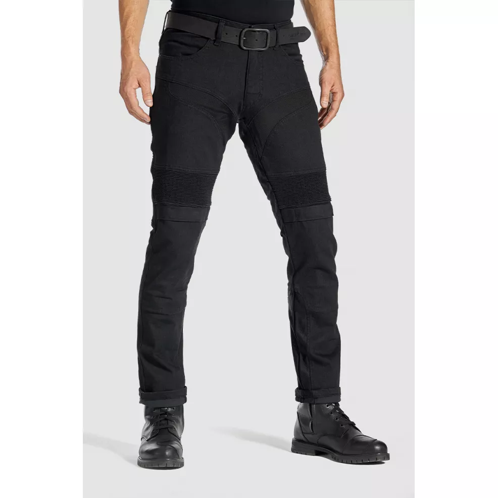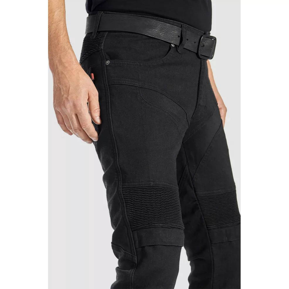 These black motorcycle slim-fit, regular waist jeans are crafted with attention to every detail. For the rider who values versatility, comfort, and design, the KARLDO KEV 01 is an obvious choice. 11oz CORDURA® super-stretch denim is a guarantee of safety you cannot be without on the road. Zero compromises on safety thanks to the protective DuPont™ Kevlar® lining reinforcement in high-risk abrasion and impact zones. Enjoy superior ventilation thanks to unique CORDURA® mesh panel inserts, carefully placed on the front and lower leg areas to give you extra comfort in a hot climate.