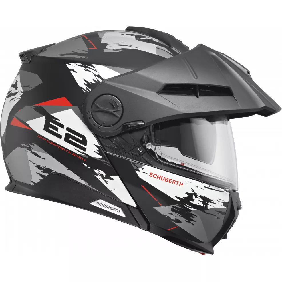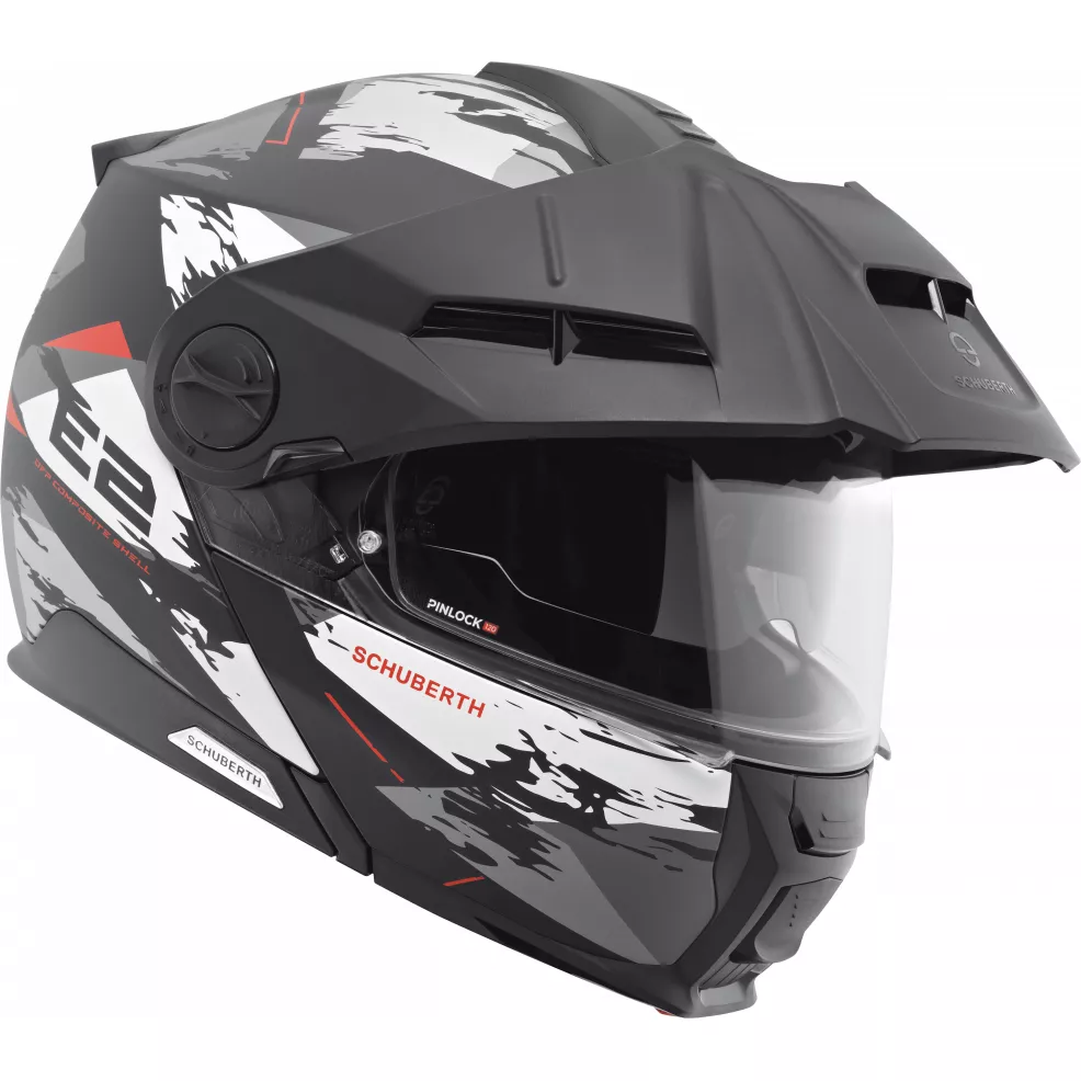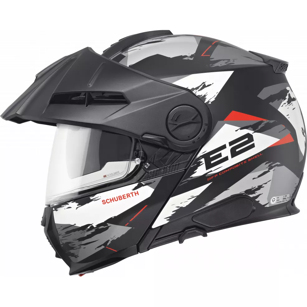 SCHUBERTH E2 rappresenta la seconda generazione di caschi adventure di SCHUBERTH ed il secondo casco della gamma dotato di doppia omologazione P/J e conforme alla nuova norma ECE 22.06. SCHUBERTH E2 è il mix perfetto tra il comfort della famosa serie "C" ed il look aggressivo di un casco offroad. Il nuovo E2 integra inoltre tutti gli ultimi standard SCHUBERTH in termini di sicurezza, aerodinamica e prestazioni aeroacustiche.