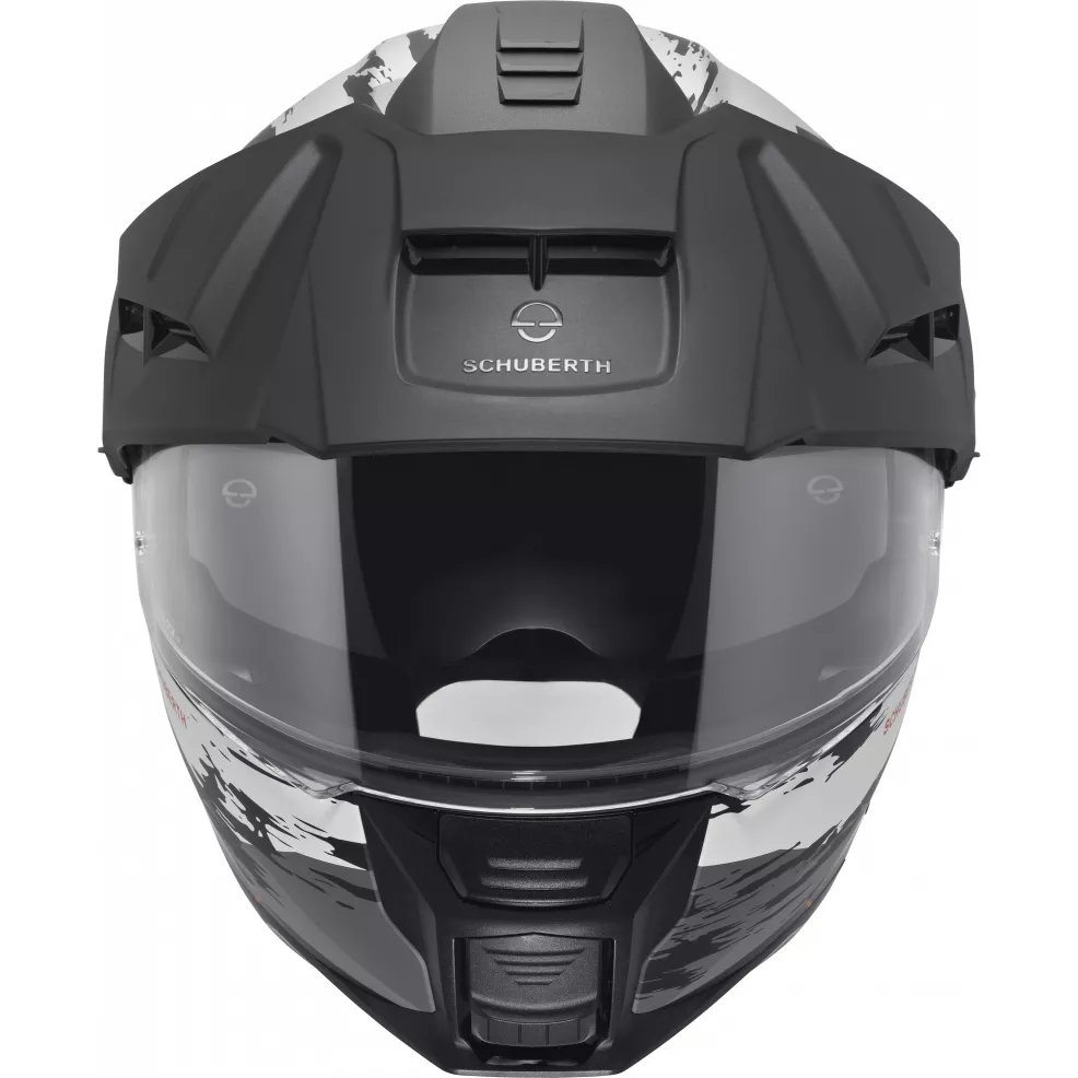 Il nuovo frontino dell'E2 è stato sviluppato nella galleria del vento SCHUBERTH per ridurre al minimo scuotimenti e vibrazioni. L'E2 offre al rider molteplici configurazioni. Il frontino è stato infatti progettato non solo per essere facilmente regolabile su 3 posizioni, ma anche per essere facilmente rimosso.