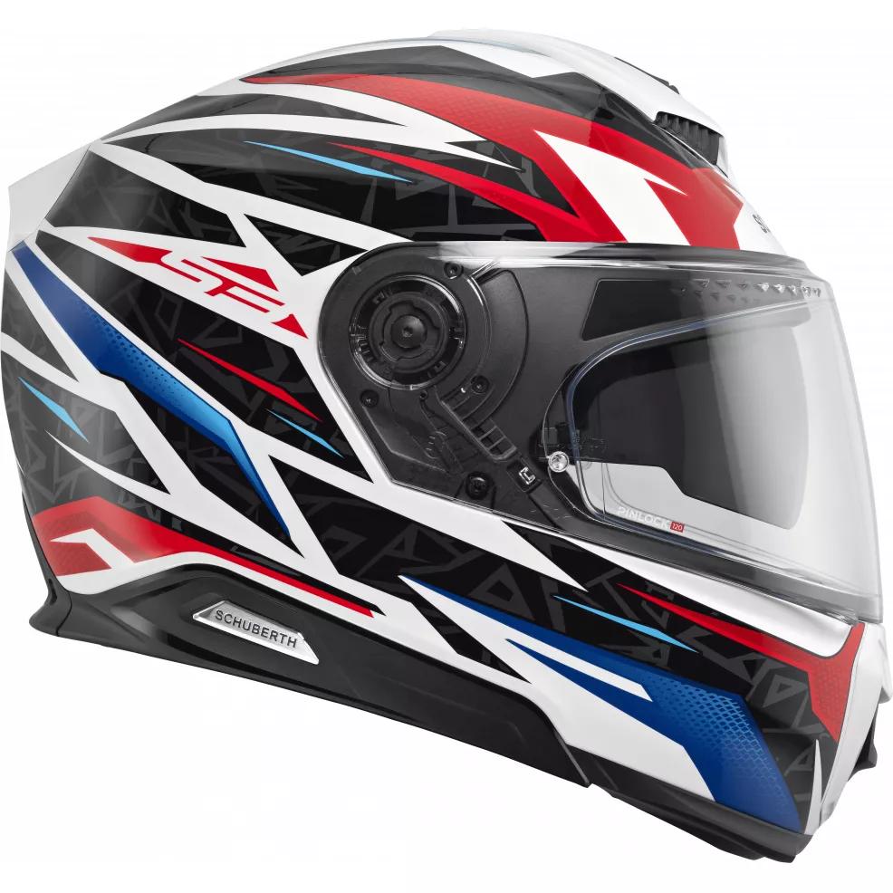 - S.R.S. (Schuberth Rescue System): in caso di incidente, i guanciali possono essere rimossi dai soccorritori, riducendo in questo modo le forze che impattano sul collo del pilota e facilitando la rimozione del casco